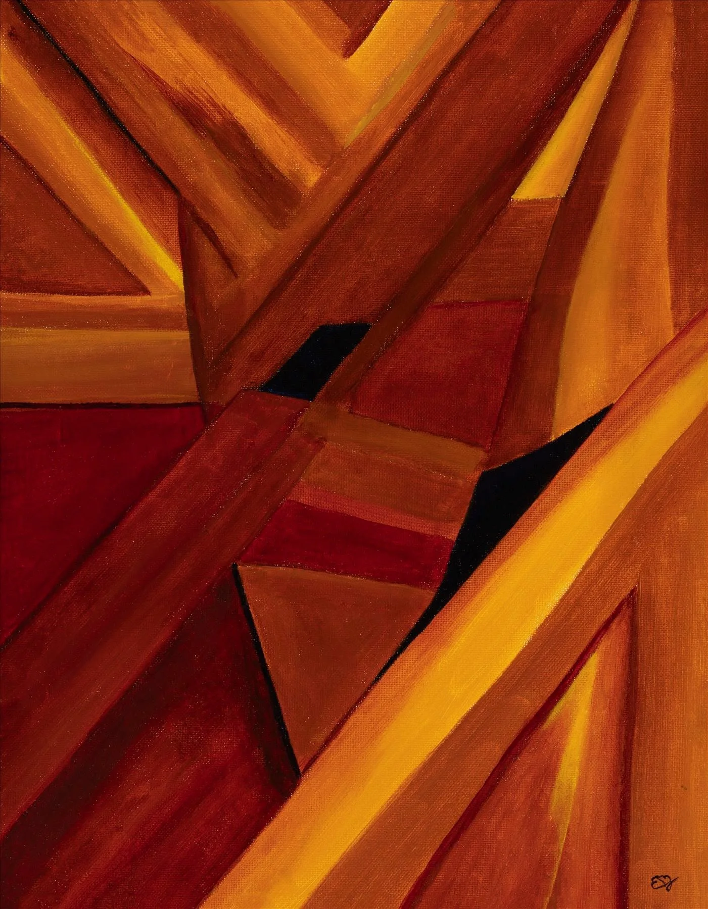 Ellen’s work is abstract, based on natural objects — a rock, a canyon, a cloud.
